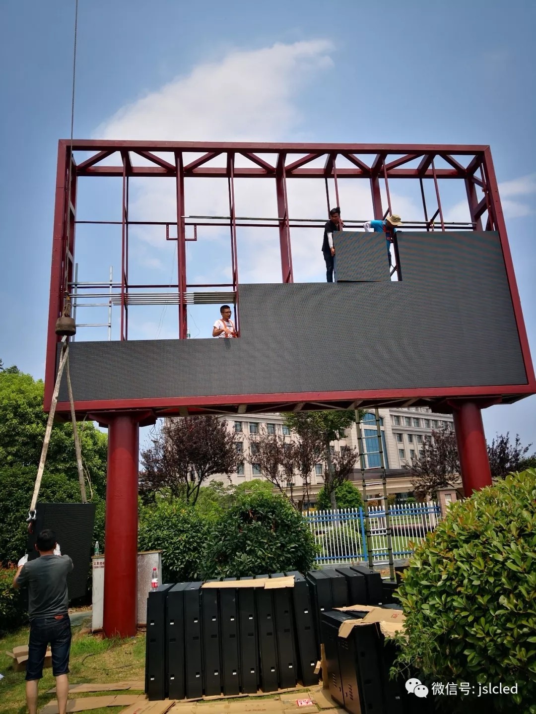The project is undertaken by Jiangsu Bright Colors. It is responsible for the design and construction of the steel frame structure and the overall construction of the LED display system. In midsummer, the bright color Engineering Department has also meticulously completed the installation of outdoor display screen. The Jiangsu bright color team has constantly improved product excellence and improved after-sales service to ensure the perfect delivery of each display installation project.